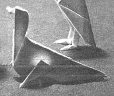 ********** 1934 Don Miguel claims to have invented a pato / duck design in the Prologo-epilogo to the revised 1934 edition of 'Apuntes para un tratado de cocotología'. ********** Unamuno's Swan (Cisne) 1932 A photograph of this design appears in a photograph in a two page article about Don Miguel's paperfolding in 'Estampa' magazine in Madrid on 3rd December 1932.