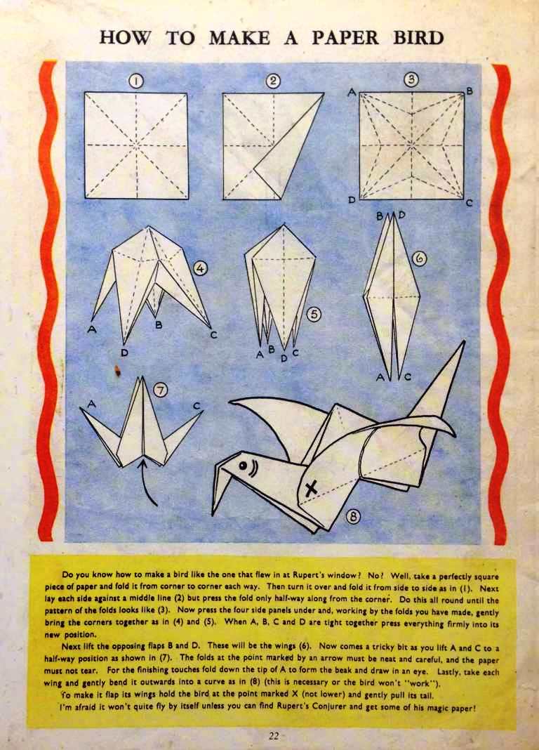 'The New Rupert Book' was published by the Daily Express in 1946. It contained a story featuring, and instructions for making, The Flapping Bird and another story titled 'Rupert Makes a Paper Plane' (ie The Paper Dart) and presumably instructions for this as well (which I have not been able to find at present). **********