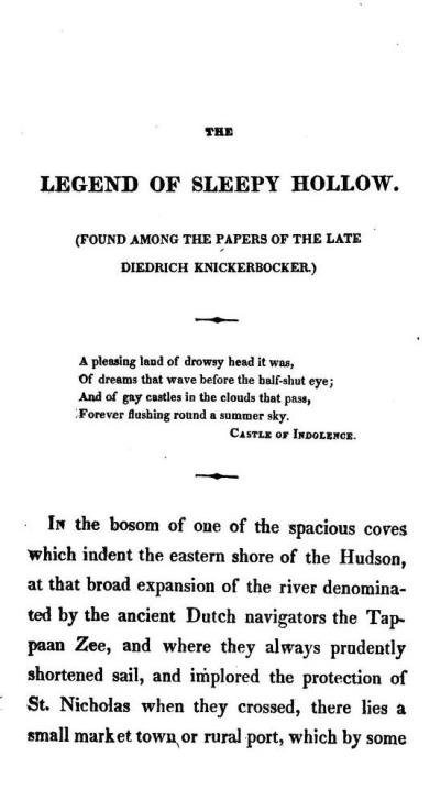Part 6 of 'The Sketch Book of Geoffrey Crayon, Gent' by Washington Irving, was published by C S Van Winkle in New York in 1820. The story 'The Legend of Sleepy Hollow, which it contained included the following passage: