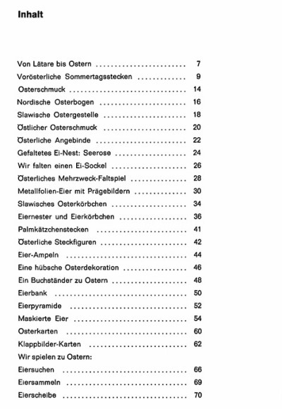 'Werken und spielen zu Ostern' by Walter Sperling was published by Frech in Stuttgart-Botnang in 1968. It is a book of Easter crafts, which may prove to contain some paperfolding material. I have not seen a full copy of the work. **********