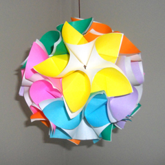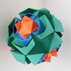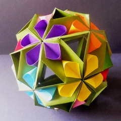 similar appearance. Most of my modular balls tend to be abstractly geometric rather than organic in appearance ... but here are a few that can perhaps properly be described as kusudama. Further details about the designs pictured below can be found here. |