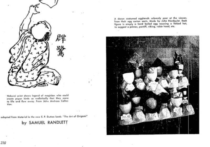 This anonymous article was written using material taken from Samuel Randlett's 'The Art of Origami' which had been published by E P Dutton earlier in 1961. ********** ********** |