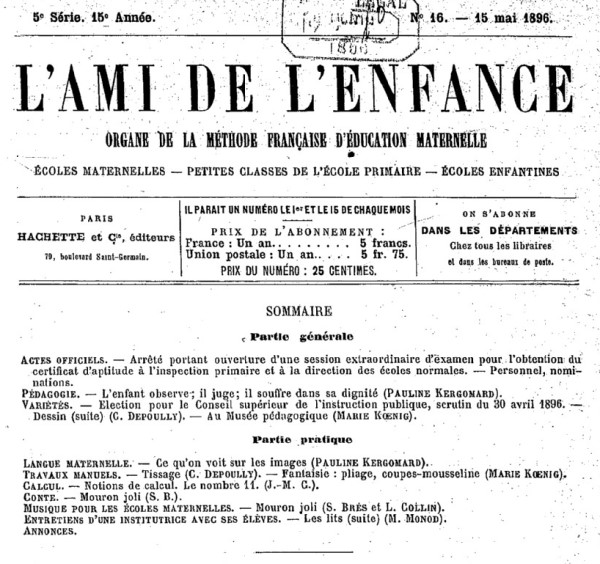 | Article by Marie Koenig in L'Ami de L'Enfance, 15th May 1896 | |||||||