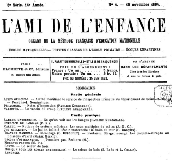 | Article by Marie Koenig in L'Ami de L'Enfance, 15th November 1894 | |||||||