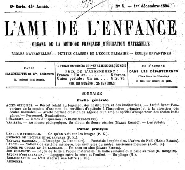 | Article by Marie Koenig in L'Ami de L'Enfance, 1st December 1894 | |||||||