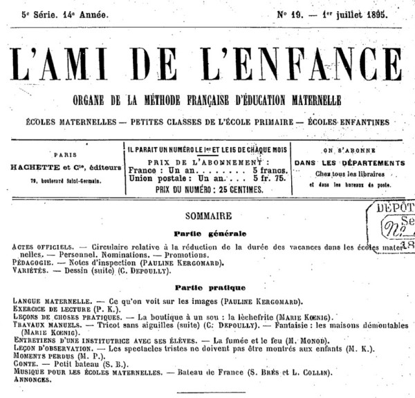 | Article by Marie Koenig in L'Ami de L'Enfance, 1st July 1895 | |||||||