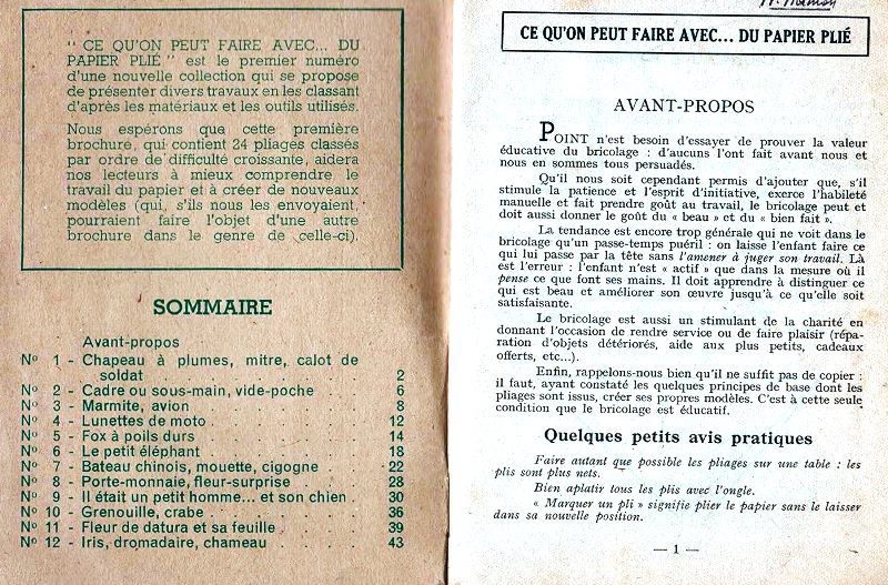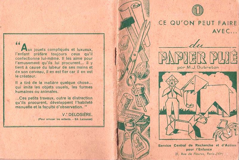 'Ce qu'on peut faire avec du papier plie' by Marie-Jacqueline Michel-Dubreton is undated. According to Google Books it was originally pubished by J Herbert, presumably in Paris, in 1948. Subsequent editions (from 1960 onwards?) were published by Fleurus. I have not seen a full copy of the original work. ********** ********** |