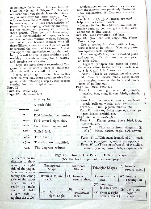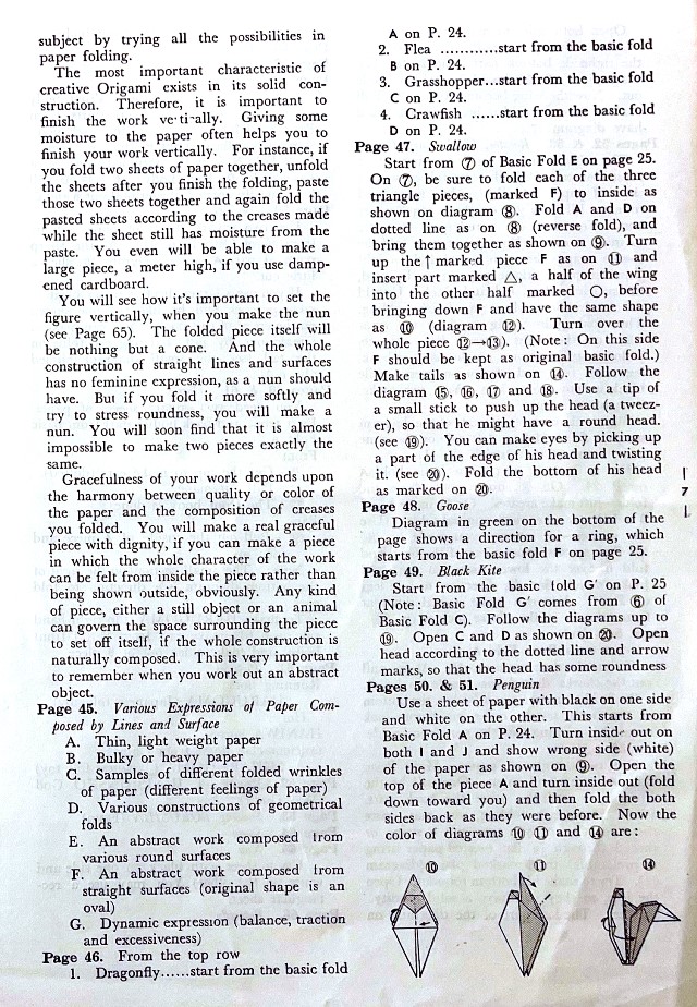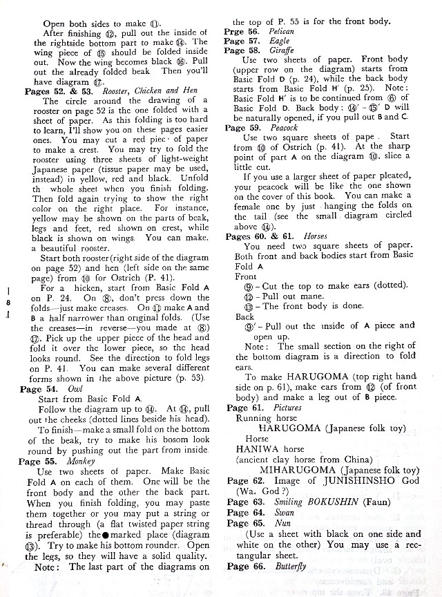 copy. The leaflet is undated but must be from 1967 since 'The Origamian' Vol 7 Issue 4 for Winter 1967 contained a brief article 'Origami Dukuhon Reprinted' which mentions that 'The book is entirely in Japanese, but an 8-page insert provides an English translation of the text.' **********