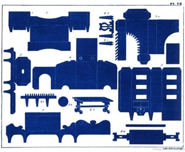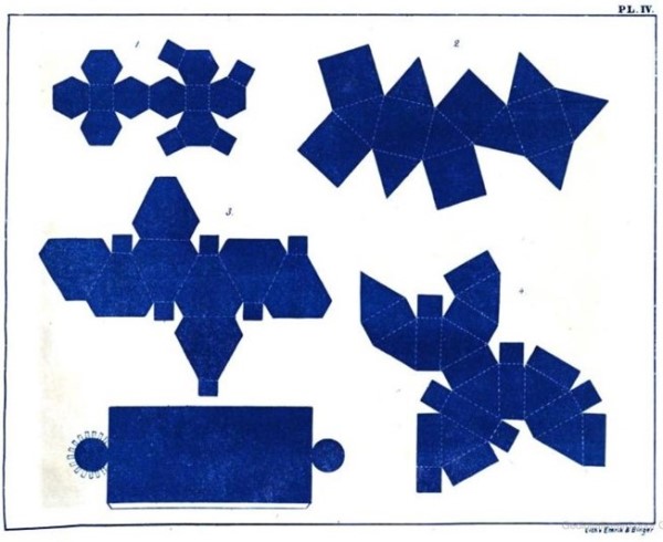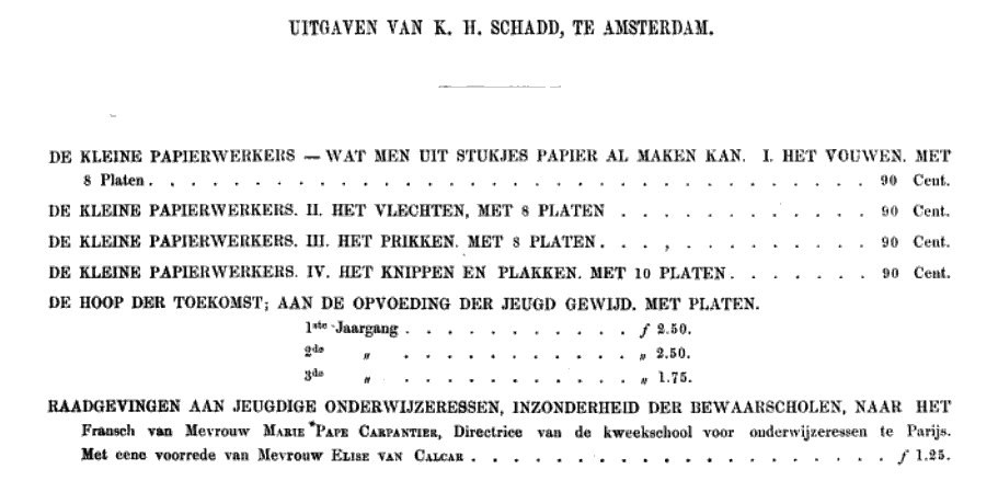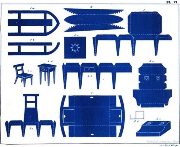 'De Frobelsche Kartonwerkers' by Elise Van Calcar was published by K H Schadd in Amsterdam. The work is undated but said to date from 1865. It is a manual of cardboard modelling designs. No explanation is given for the title or as to why Froebel and Cardboard Modelling should be linked in this way. The designs are for: Furniture / Buildings / Boxes / Polyhedra. A full copy of the work can be accessed online here. **********