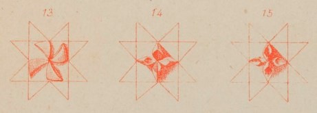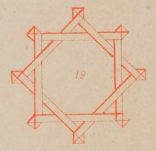 Roughly translated this says, 'The connection of these stars creates lovely little baskets, which can be made square, round or elongated and provided with a handle. Pictures 13, 14 and 15 each show a different way of decorating a star.'