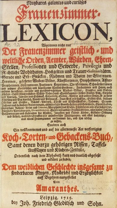 Nutzbares, galantes und curiöses Frauenzimmer-Lexicon by Amaranthes, 1715 | |||||||