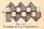 *** The same work contains instructions for making braids from three , then four, then five strips in various complex ways, culminating in the braiding of a napkin ring.