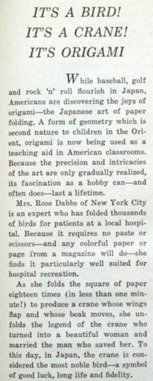 article titled 'It's a Bird! It's a Crane! It's Origami'