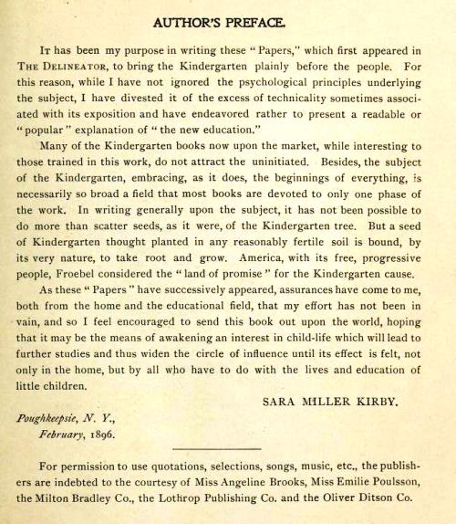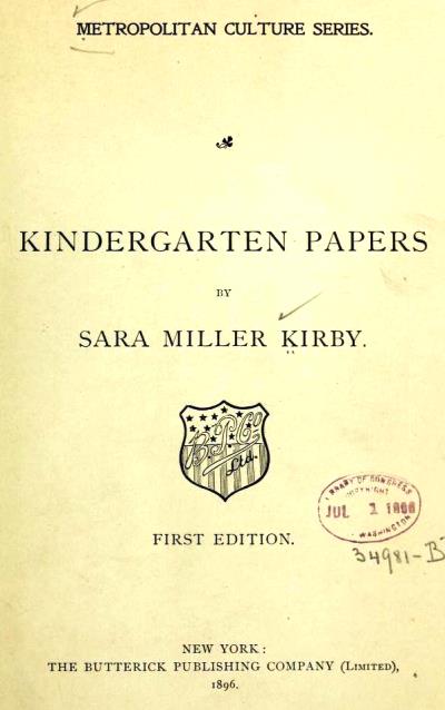 | Kindergarten Papers by Sara Miller Kirby, 1896 | |||||||