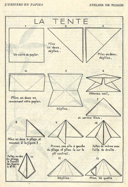 anonymous diagrams for 'La Tente' (The Waterbomb