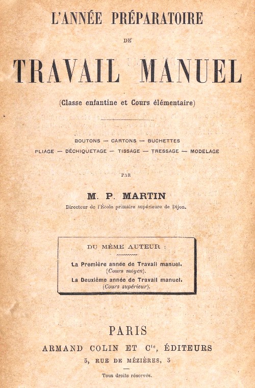 | L'Annee Preparatoire de Travail Manuel by M P Martin, 1893 | |||||||