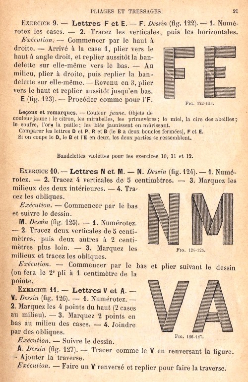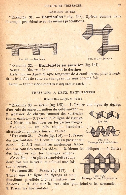 contains sections on Pliages et tressages de bandelettes