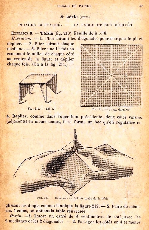 and Pliage du papier. This page is based on an undated copy of the work which can be accessed online here. This copy may not be entirely complete, since it lacks an Introduction, if there was one. I have no reason to believe this is not either a first edition or a later, but identical, printing. **********