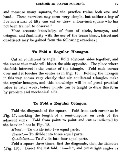 ********** Folding Folding is used to create various flat geometric shapes from the square ie oblongs, various types of triangle, rhomboid, trapezoid, trapezium, rhombus, the regular hexagon, the regular octagon and a four-pointed star. Constructing the equilateral triangle
