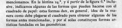 ********** Folds of Beauty 'Plate 24 shows some of the forms that can be made with the square of paper: These forms give, in general, an idea of how to fold the square to obtain some of the aforementioned forms, and by themselves they constitute artistic forms based on the geometric ones.'