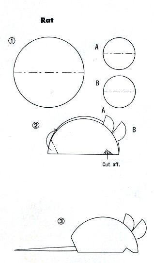 ********** 1964 Designs for a 'Birdie', a 'Chick' and a 'Rat' appear in 'Happy Origami: Tortoise book' by Tatsuo Miyawaki, which was published by Biken-Sha in Japan in 1964. Birdie (from 4 pieces of round paper and one square)
