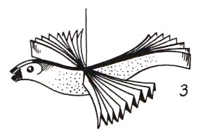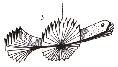 ********** 1940 The 5th edition of 'Lustiges Papierfaltbüchlein' by Johanna Huber included the same photograph as the 1931 edition but also contained some accompanying text, saying,: 'Beautiful fairy-tale birds and butterflies can also be made from the accordion folds' and which also goes on to describe how the designs are made. ********** 1961 Three designs of this kind appear in 'How to Make Things Out of Paper', which is a translation into English, published in 1961 by Sterling Publishing Co Inc in New York, of Walter Sperling's 1955 book 'Papier-Spiele'. The Decorative Bird - Both wings and body are made from pleated paper.