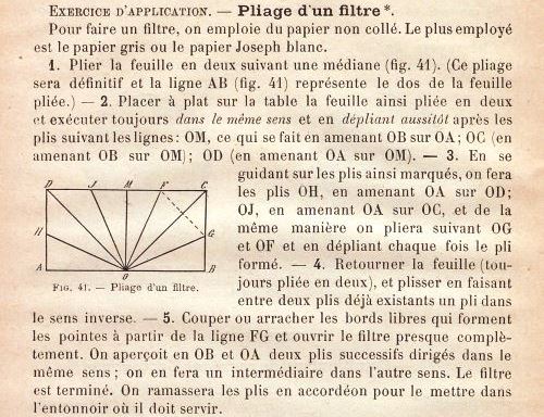 ********** 1892 'Le Travail Manuel a L'ecole Primaire' by Jully & Rocheron, which was published by Librairie Classique Eugene Belin in Paris in 1892 contains instructions for making a simple filter.