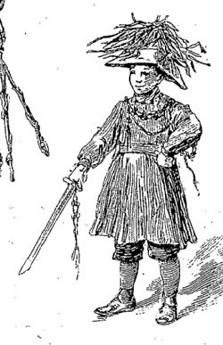 ********** 1849 Another early drawing of a newspaper hat appears in an illustration by Vilhelm Pedersen (1820-1859) which was published in the 1849 2nd Edition of Hans Andersen's tales. Information from Juan Gimeno.