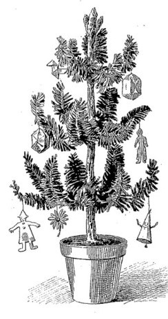********** A second article by Marie Koenig, in 'L'Ami de L'Enfance' of 1st December 1894, describes how to make a Xmas tree from wire and wool. The picture shows it decorated with waterbombs.