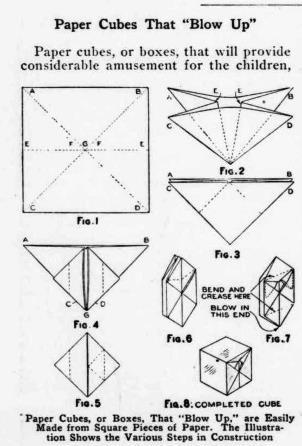 ********** 1920 As 'Paper Cubes That 'Bow Up'' in the issue of Popular Mechanics for November 1920.