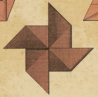 ********** 1879 In 'Paedagogische Bibliotheek VI: Frobel' by J Versluys, which was published by W Versluys in Groningen in 1879, in which the author says: 'If a child calls a shape like the one shown here a windmill, don't be surprised ... But whether it is advisable to tell the child that this figure represents a windmill is another question, and one I wouldn't readily answer in the affirmative.'