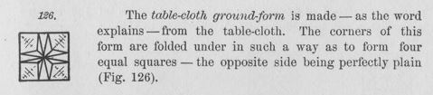 This page is being used to collect information about the Windmill Base. Please contact me if you know any of the information on this page is incorrect or if you have any other information that should be added. Thank you. ********** 1882 In 'The Kindergarten Guide' by Maria Kraus Boelte and John Kraus, which was published by E. Steiger and Company in New York and by George Philip and Son in London, probably in 1882, the Windmill Base is referred to as 'the table-cloth groundform' and made by collapsing each corner of the Tablecloth into a flat square.