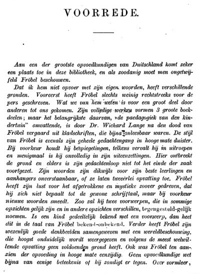 'Paedagogische Bibliotheek VI: Frobel' by J Versluys was published by W Versluys in Groningen in 1879. This work is an overview of Froebel's theory and teaching methods. The illustrations are taken from 'Katechismus der praktischen Kindergärtnerei' by Friedrich Seidel. While the text is largely based on the text of the earlier work it includes substantial interpolations by the author and it seems safer to treat it as an entirely new book and provide a full Analysis.