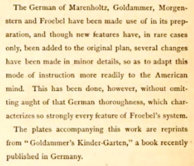 The title is taken from Morgenstern's book. The vast majority of the text seems also to be taken from Goldammer's 'Der Kindergarten'. A full copy of the work can be accessed here. **********