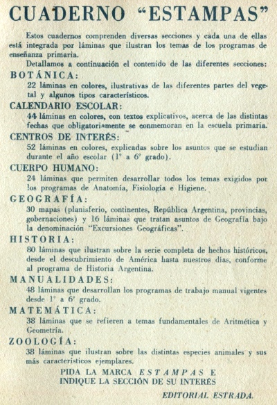 | Plegado laminas published by Estrada S A, date unknown but prior to 1952 | |||||||