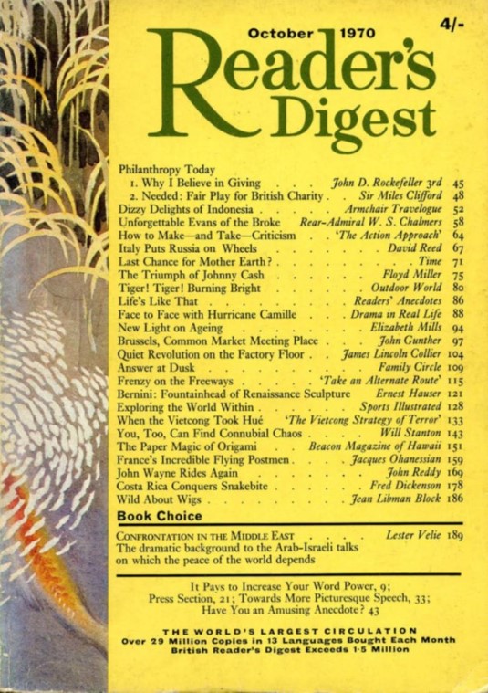 Article in Reader's Digest Magazine (British version) October 1970 | |||||||