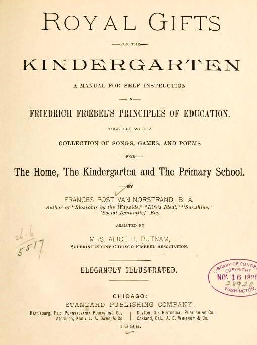 | Royal Gifts for the Kindergarten by Frances Post Van Norstrand and Alice H Putnam, 1888 | |||||||