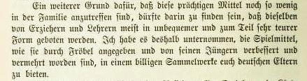 occupations. The Foreword (dated 1872) says: 'I have ... undertaken to offer you, German parents, ... the instruments for playing as proposed by Froebel and improved and expanded by his disciples.'