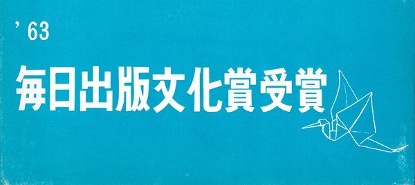********** As is normal with Japanese books the work came in a cardboard sleeve around which was a separate blue 'ribbon'. The wording on the front of the banner says: 'Mainichi Publishing Culture Award Winner '63'.