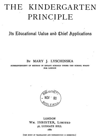 | The Kindergarten Principle by Mary J Lyschinska, 1880 | |||||||