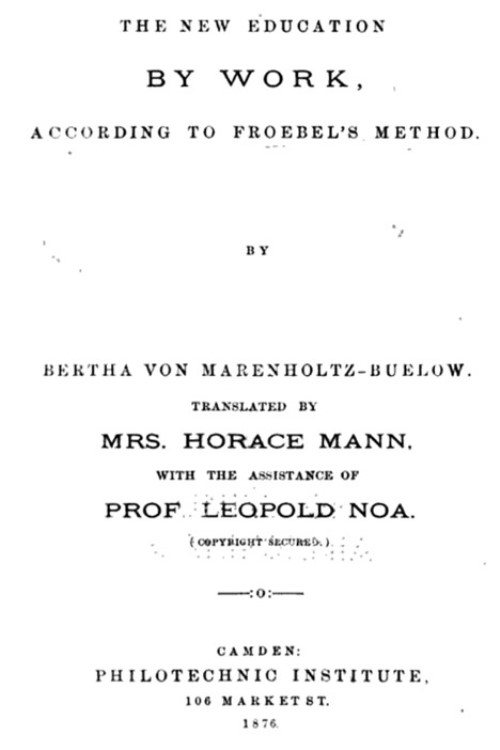 The New Education by Work According to Froebel's Method by Bertha von Marenholtz-Buelow, 1876 | |||||||