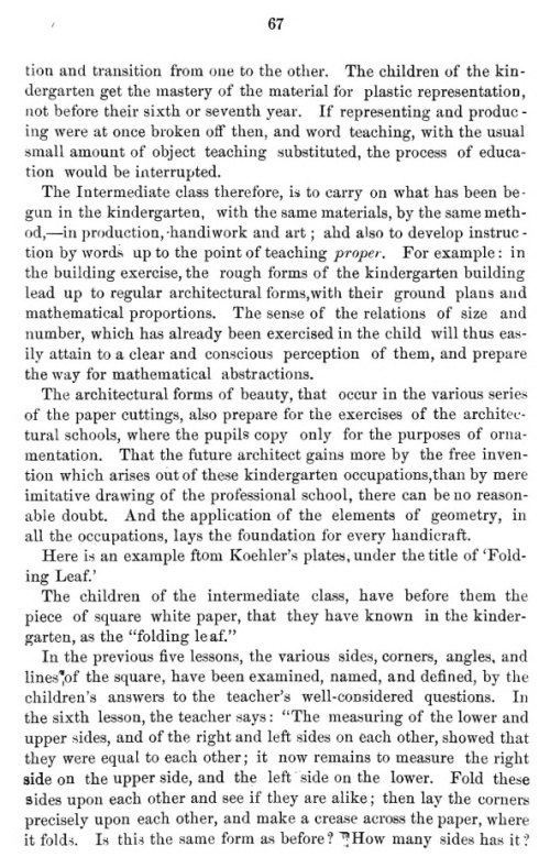 'The New Education by Work According to Froebel's Method' by Bertha von Marenhotz-Buelow, translated by Mrs Horace Mann with the assistance of Prof. Leopold Noa, was published in Massachusetts in 1876. It contains a passage explaining the use of Folds of Knowledge in Froebel's Intermediate Class based on the work of August Koehler. A footnote equates this with the advanced class in many American kindergartens. A full copy of the work can be accessed online here. ********** **********