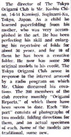 *** A report of 'A Paperfolder's Trip to Japan' by Florence Temko, which describes her meetings with Akira Yoshizawa, Toyoaki Kawaii and Koshio Uchiyama.
