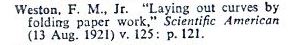 'Laying out Curves by Folding Paper' by Frances M Weston was published in the 13th August 1921 issue of Scientific American. This article is mentioned in Gershon Legman's 'Bibliography of Paperfolding' which was published in 1952.