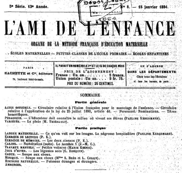 | Article by Marie Koenig in L'Ami de L'Enfance, 15th January 1894 | |||||||