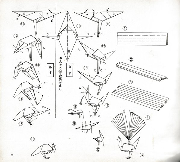 ********** The Compound Peacock (Honda's Peacock) Note that in this version of the Compound Peacock design the tail is glued inside rather than outside the body. It appears to me that the crest is created by means of a cut.