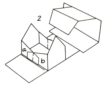 ********** 1961 A 'House' made using the cardboard modelling technique but without needing glue appears in 'How to Make Things Out of Paper', which is a translation into English, published in 1961 by Sterling Publishing Co Inc in New York, of Walter Sperling's 1955 book 'Papier-Spiele'.