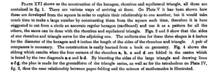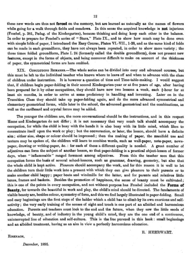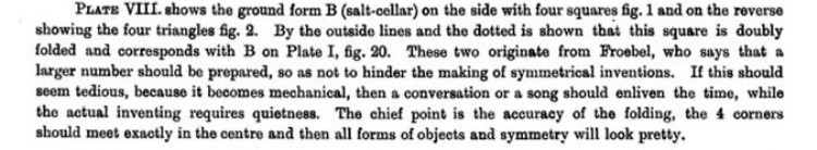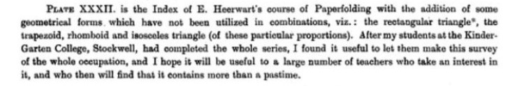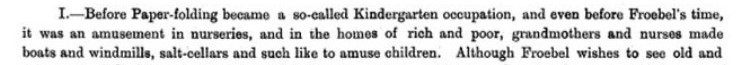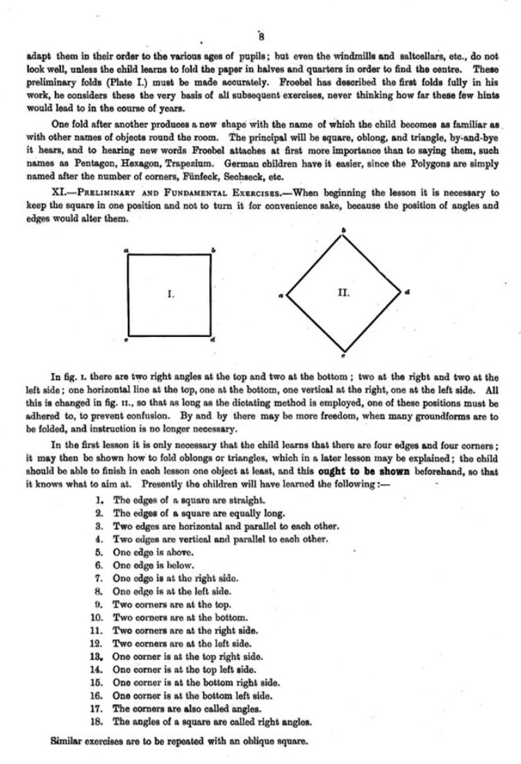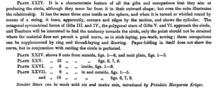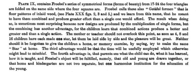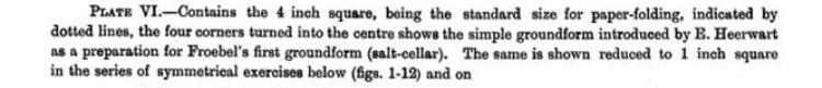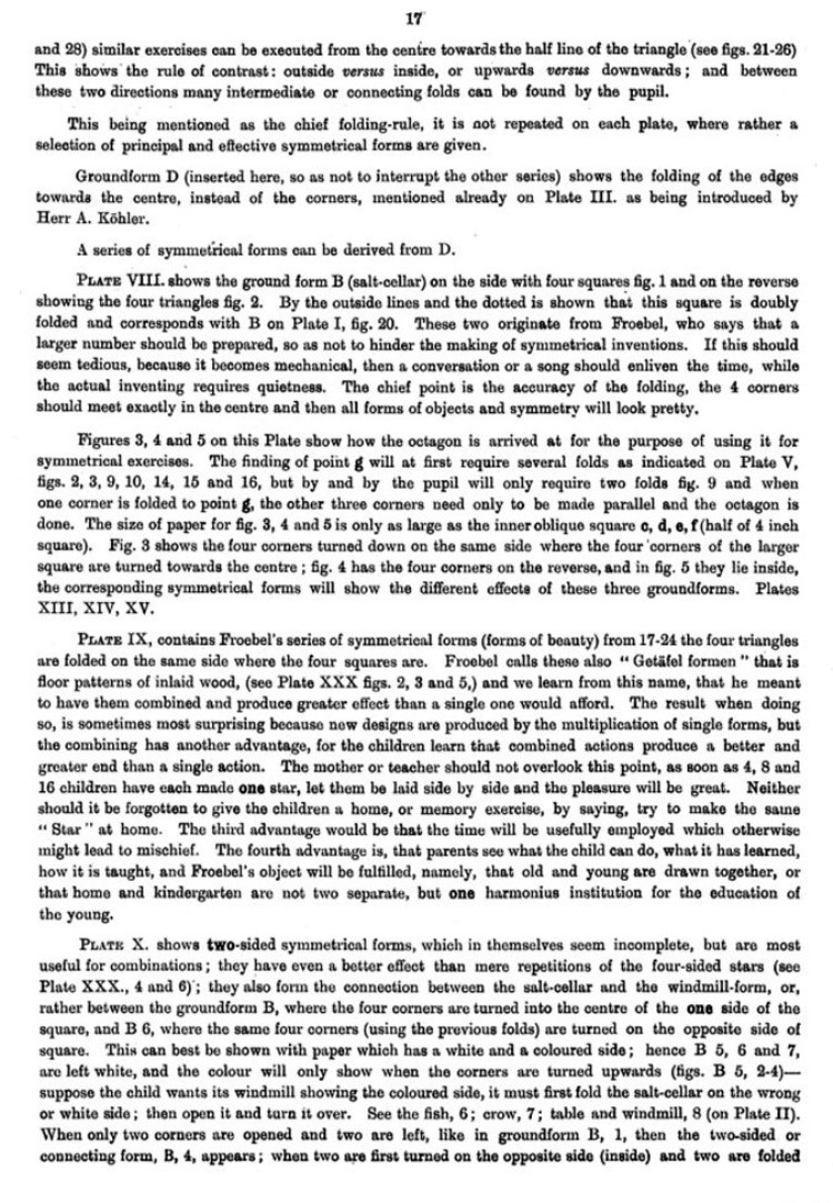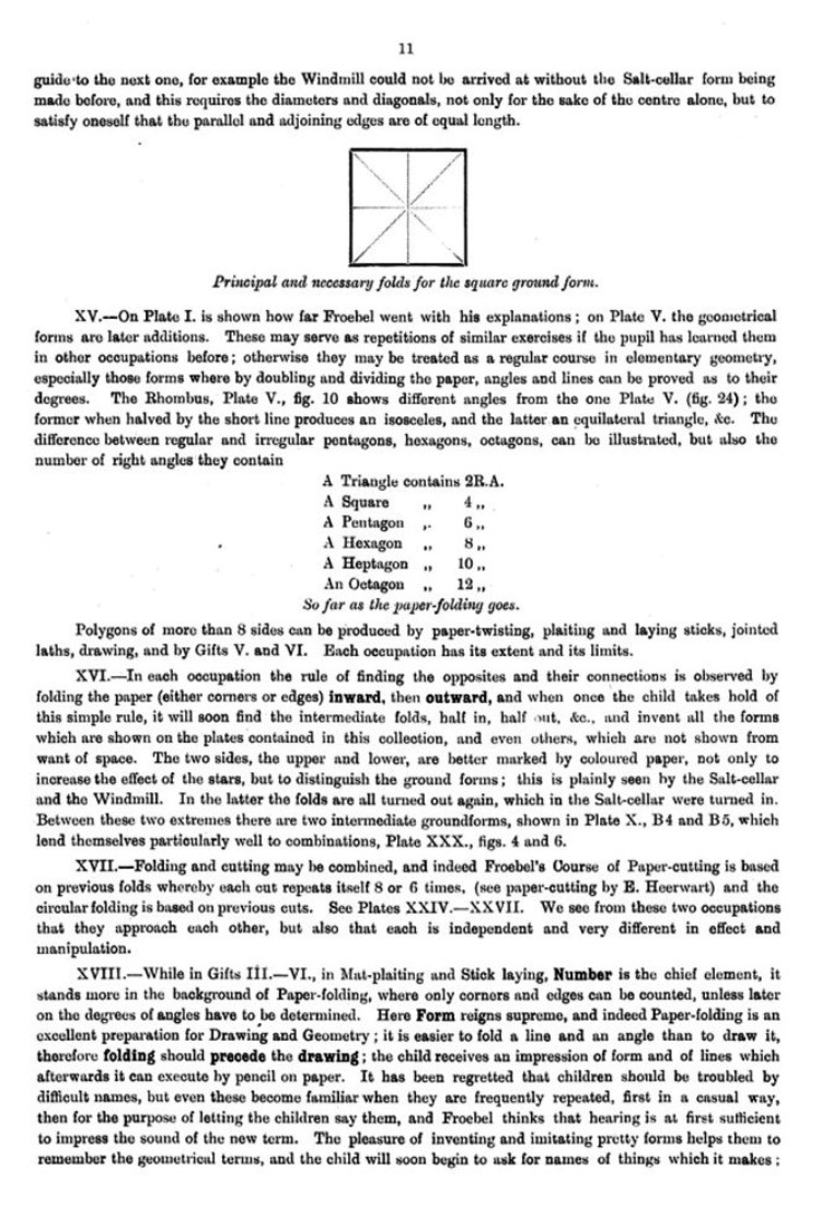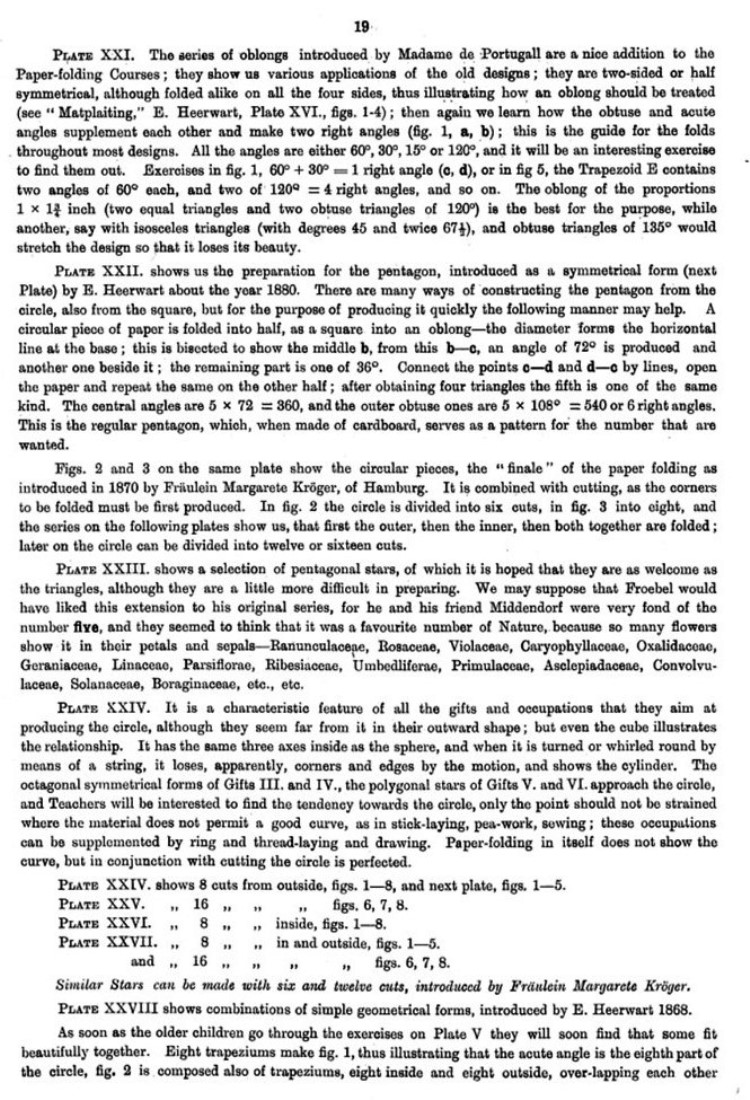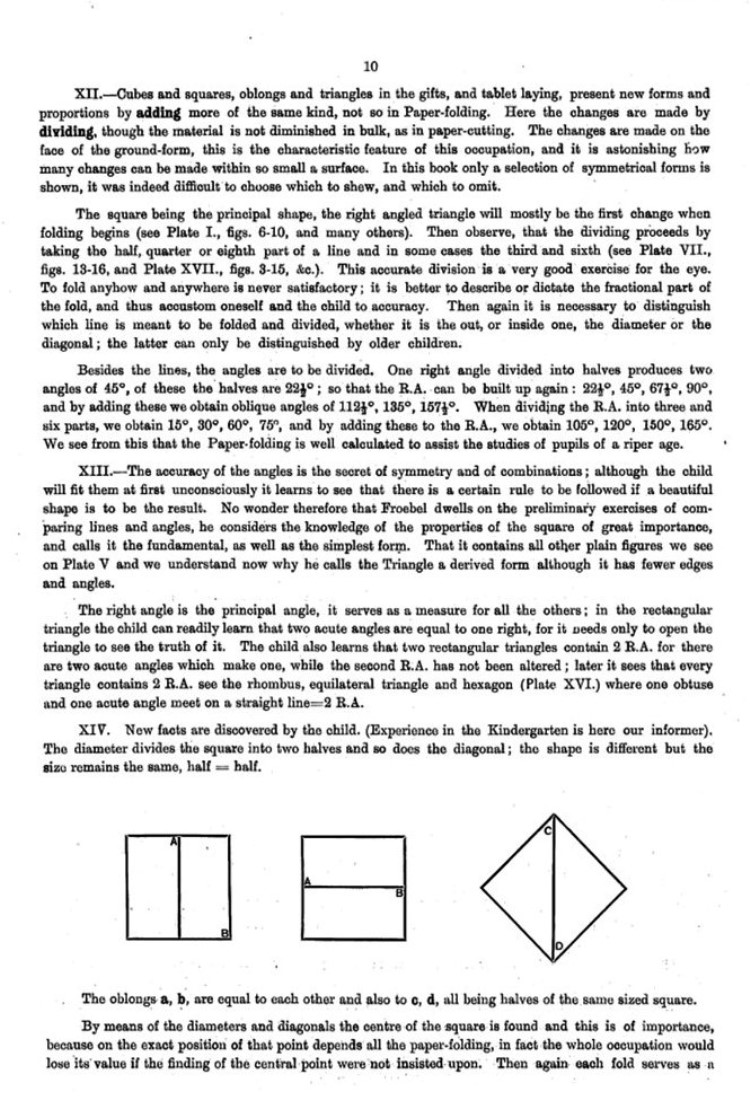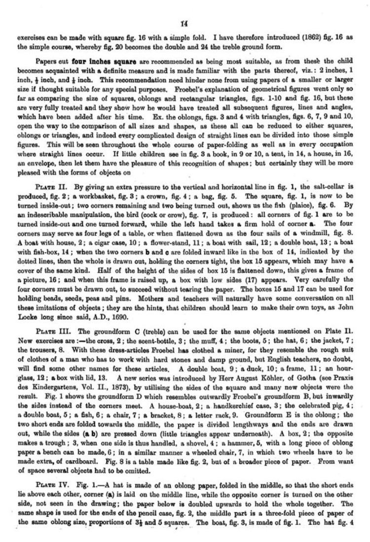 ********** Information about the extent and limitations of Froebel's own paperfolding From the Introduction - Froebel saw paperfolding as an occupation for children of ages 5 to 7 and beyond.
