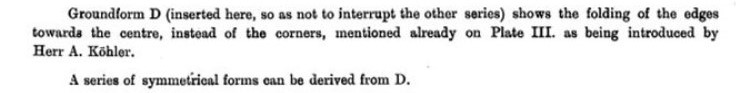 The attribution of the forms shown in Figs 13-16 to the author and/or Miss Steele is erroneous. Forms 13,14 and 15 appear in the works of August Koehler. Form 16 is form 15 applied to a blintzed square and is probably correctly attributed to the author, as may be forms 22 to 24.