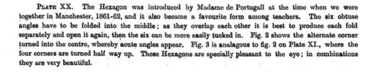 ********** Information about Paperfolding before Froebel's time From section I of the Introduction - mention of the Salt-Cellar and the Cocotte / Pajarita
